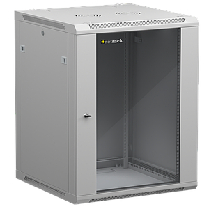 Netrack 19" wall-mount F-Line rack cabinet, 15U 600*450, glass door, gray, flat-pack