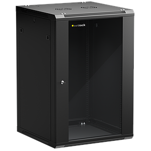Netrack 19" wall-mount F-Line rack cabinet, 15U 600*600, glass door, black, flat-pack