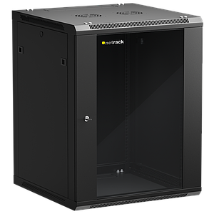 Netrack 19" wall-mount F-Line rack cabinet, 12U 600*450, glass door, black, flat-pack