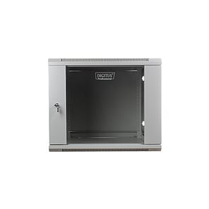 Digitus wall mount cabinet 19" 9U 501/600/450mm, glass door, grey, unmounted