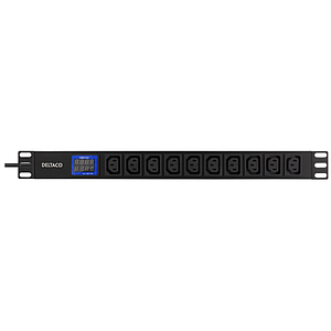 19" 1U 10 C13 pesa ja Schuko pistikuga toitepaneel, 2.5kW, numbriline volt- ja ampermeeter, 2m, must