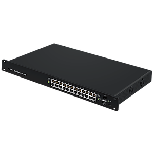 Ubiquiti EdgeSwitch layer 2/3, PoE switch with (24) Gigabit RJ45 ports, (2) SFP ports, 250W power supply.