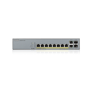 10 port smart managed switch 8x Gigabit copper and 2x Gigabit dual pers., hybird mode, standalone or NebulaFlex cloud, 130 Watt PoE, fanless